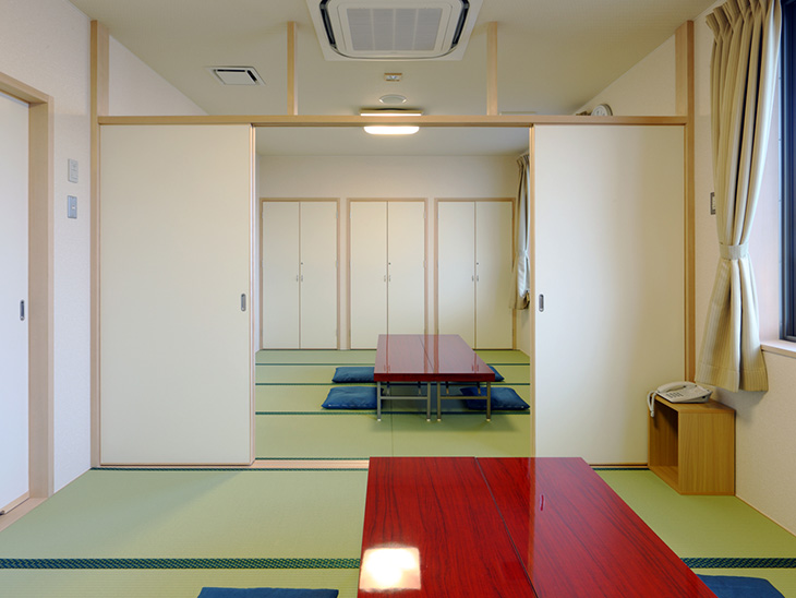 - 家族葬・一般葬・法事・法要などに対応できる充実設備。控室はもちろん、仮眠室など故人様とご家族がゆっくりと過ごしていただける空間をご用意。